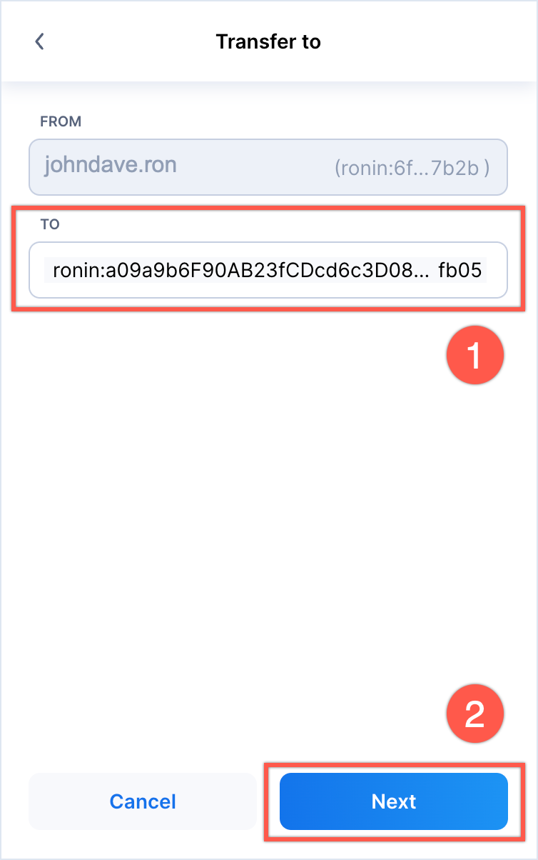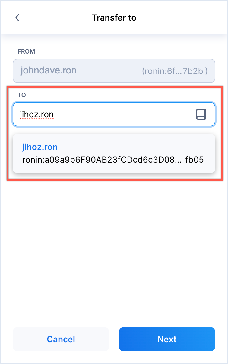 4. Enter the recipient's address and click Gift. mm-gift-rns-ronin-add-complete Or use the exact RNS name of the recipient, including the .ron part. mm-gift-rns-name-complete