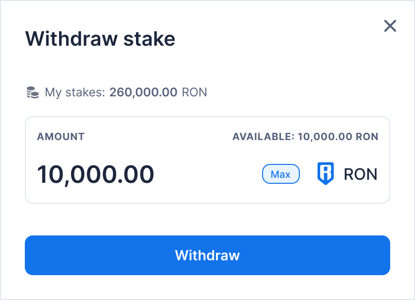 Enter the amount manually or choose Max to withdraw the entire stake, and then select Withdraw.